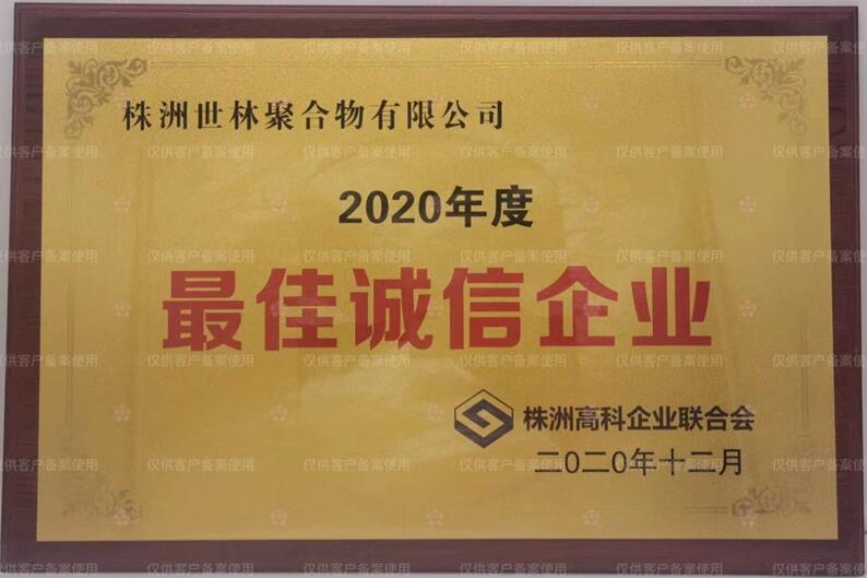 祝賀株洲世林聚合物有限公司獲得2020年度“最佳誠(chéng)信企業(yè)”