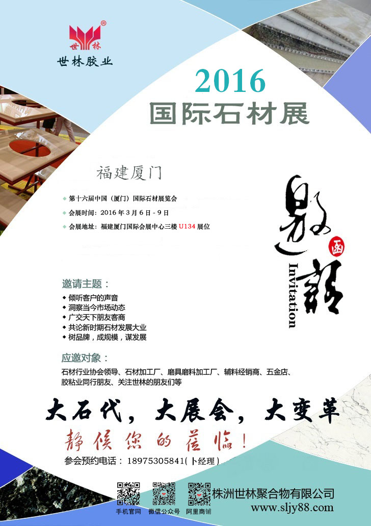 您現(xiàn)在的位置:世林膠業(yè)首頁(yè) - 資訊大全 - 世林膠業(yè)誠(chéng)邀您參加2016年國(guó)際石材展