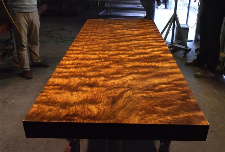 實木大板,是近幾年漸趨流行的一種商業(yè)和辦公家具,它主要由外國進口的較為名貴的百年老木做成。這些木頭口徑較大,一般少在2000px以上上,從中切出一片10-375px厚的大板,就是實木大板?捎糜谧鲛k公桌、大班臺、主管桌、會議桌以及辦公電腦桌等。主要的材質(zhì)有巴西花梨、非洲楠木、非洲雞翅木、緬甸金絲柚木、非洲紅花梨、非洲黃花梨、非洲奧坎花梨等。實木大板在成型之前的木材是有許多無規(guī)則的裂縫、蟲洞的,但我們買到的實木大板看不到這些裂縫,這是怎么弄的呢?